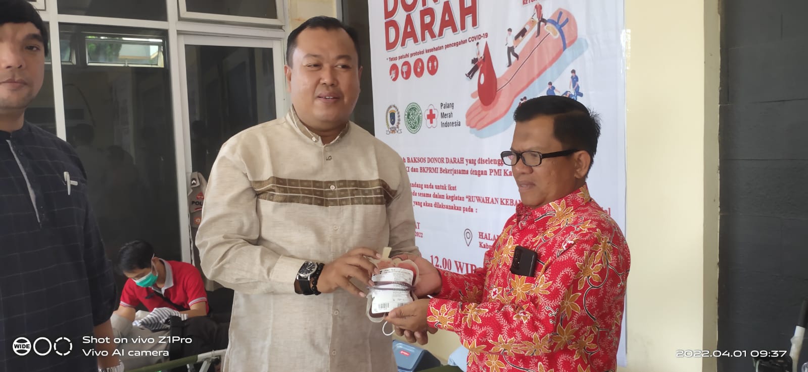 Dibincangi di ruang kerjanya Lebih lanjut mengatakan bahwa kegiatan ini didasari atas rasa kemanusiaan yang dimulai dari hal-hal yang kecil seperti ini guna membantu PMI Kabupaten OKI, dalam penyediaan darah untuk di tranfusikan kepada masyarakat yang membutuhkan.
