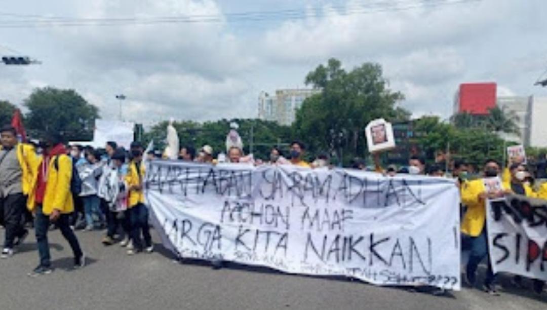 Palembang – dinastinews.com – Senin (11/4/2022) – demontrasi ribuan mahasiswa dari berbagai perguruan tinggi di Sumatra Selatan di simpang Lima DPRD Sumsel.