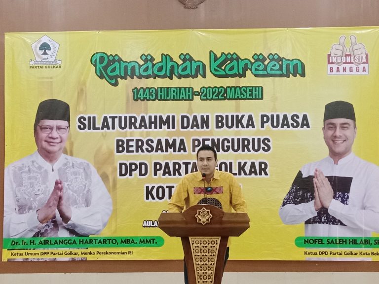 Dinastinews.com Kota Bekasi — Acara buka bersama DPD Golkar Kota Bekasi berlangsung di Aula KH. Noer Ali islamic center Kota Bekasi (16/04/2022).