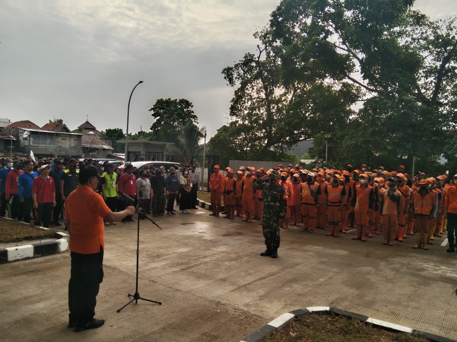 Kegiatan kerja bakti Rusun Cibesut yang akan disiapkan untuk relokasi sementara warga Prumpung sampai dengan selesai pembersihan berjalan aman kondusif.