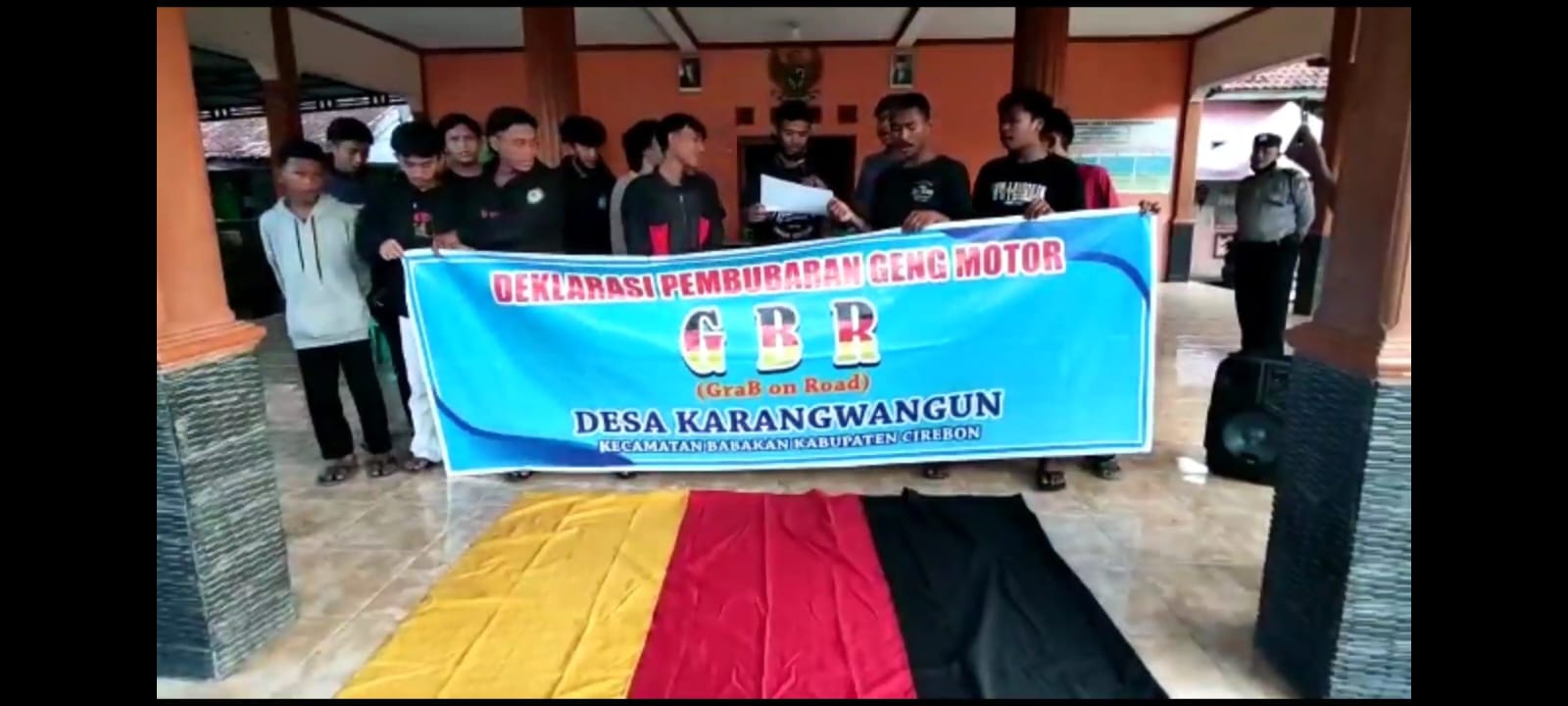 Polresta Cirebon – Puluhan anggota geng motor kelompok GBR di Cirebon Timur, membubarkan diri. Mereka melaksanakan deklarasi pembubaran kelompoknya di Balai Desa Karangwangun, Kecamatan Babakan, Kabupaten Cirebon Jumat (27/5/2022).