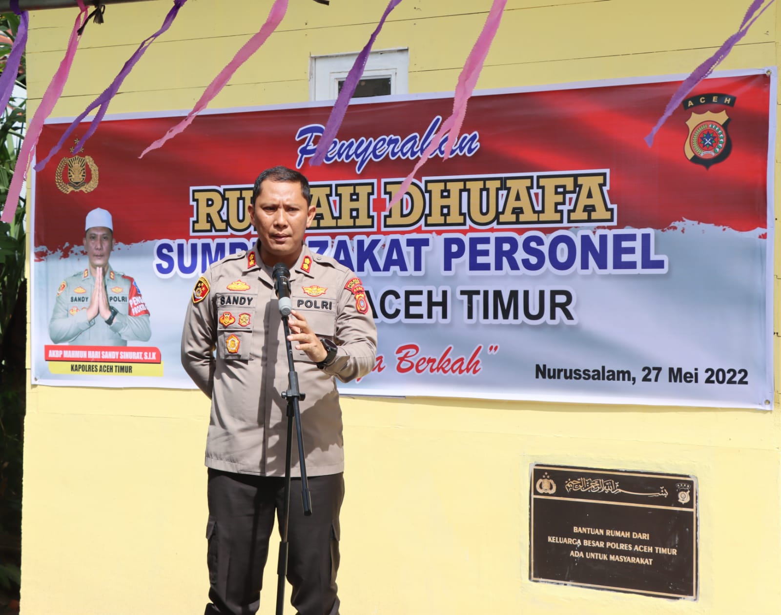 “Jadikan tempat tinggal ini untuk beribadah agar bisa menjadi ladang amal jariah bagi kami di Polres Aceh Timur.” Pungkas Kapolres Aceh Timur AKBP Mahmun Hari Sandy Sinurat. S.I.K.