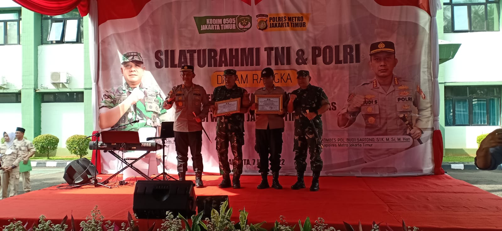 “Melalui silaturahmi, kita TNI-Polri di wilayah Jakarta timur bersepakat untuk lebih meningkatkan sinergitas berupa kesatuan dan persatuan, sinkronisasi menyamakan persepsi, keterpaduan, harmonisasi dalam pembangunan kerjasama antar institusi TNI dan Polri untuk meningkatkan profesionalisme, merupakan dasar mantapnya stabilitas keamanan nasional,” ucap Dandim.