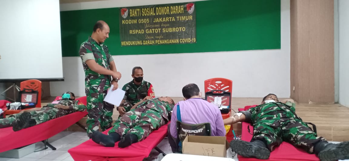 Pasi Ops Kodim 0505/JT Mayor Inf Agus mengemukakan, kegiatan bakti sosial donor darah yang diselenggarakan ini dalam rangka mendukung stok darah untuk penanganan Covid-19.