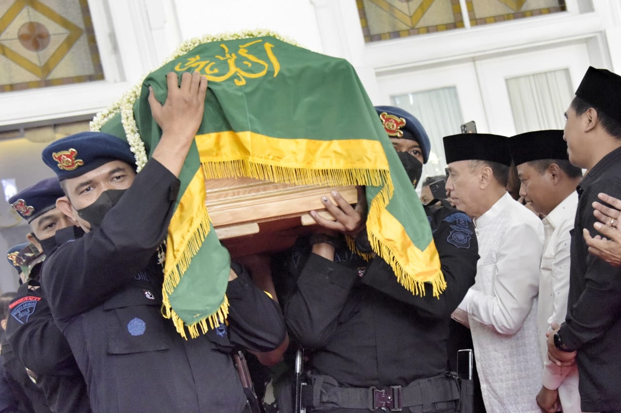 Jenazah diberangkatkan dari Gedung Negara, Kota Bandung, sekitar pukul 09.00 WIB. Lantunan salawat dan doa membuat suasana di Gedung Pakuan lebih khidmat.