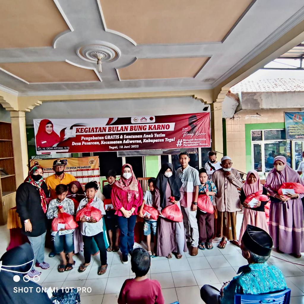 Dinastinews.com- TEGAL – Anggota Komisi IX DPR RI Fraksi PDI Perjuangan Dr. Dewi Aryani, M.Si kembali melaksanakan kegiatan bakti sosial dengan menggelar pengobatan gratis dan santunan untuk anak yatim, bertempat di Desa Pesarean Kecamatan Adiwerna Kabupaten Tegal, Sabtu pagi (18/6/2022).