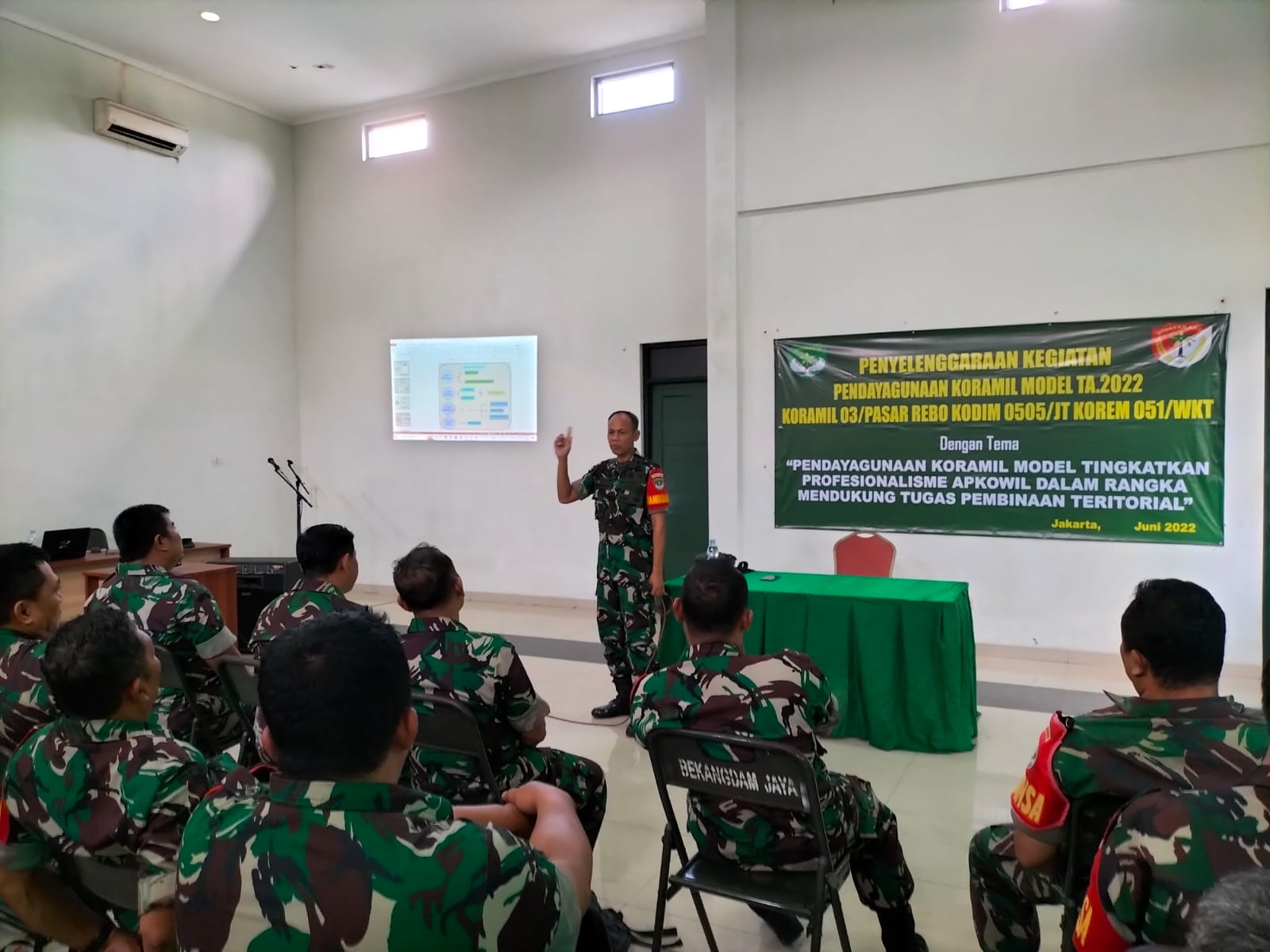 Dinastinews.com Jakarta — Dandim 0505/Jakarta timur – Kolonel Arm Yogo Widiatmoko, S.Sos.,M.Tr (Han) membuka kegiatan Pendayagunaan Koramil Model Semester I TA 2022, bertempat di Aula Koramil 03/Pasar Rebo, Ciracas, Selasa (21/06/22).
