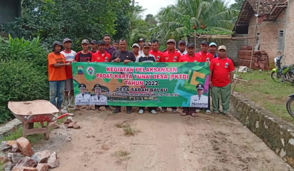 Pemerintah desa Sabah balau kecamatan Tanjung bintang kabupaten Lampung Selatan melaksanakan program padat karya tunai desa (PKTD) dengan membangun talud penahan tanah (TPT) di dusun ll desa setempat, jum’at (24/6/2022).