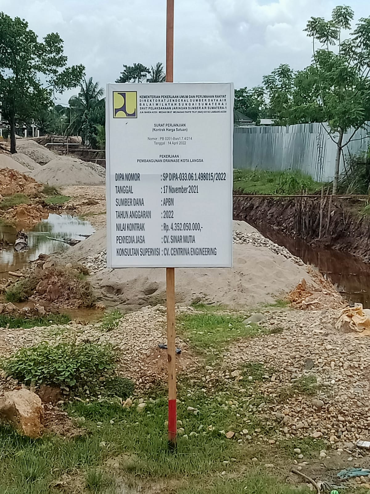 Proyek drainase dengan DIPA nomor: SP DIPA – 033.06.1.498015/2022 , Tanggal selesai 17 November 2022 , Sumber Dana APBN, Tahun Anggaran 2022, yang nilai kontraknya sebesar, Rp 4.352.050.000,- tersebut, bertindak sebagai penyedia jasa yaitu, CV Sinar Mutia, sementara Konsultan Supervisi yaitu CV. Centrina Engineering, terkait adanya dugaan kurangnya kedalaman, maka layak diduga proyek itu juga terindikasi dikerjakan tidak sesuai Spek, demikian pantauan.