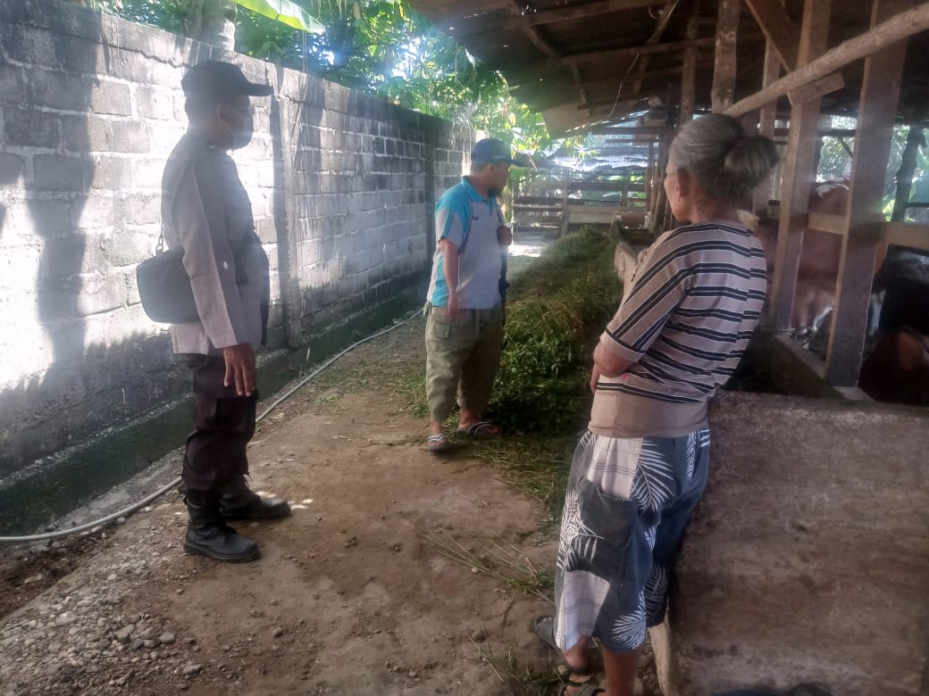 Melaksanakan giat sambang dan pendampingan Yudi Sutrimarta “Mantri Hewan ternak” melaksanakan sosialisasi PMK kepada peternak sapi di Desa Sumber agung Kecamatan Margo Tabir Dan kepada peternak untuk segera melaporkan/menghubungi Bhabinkamtibmas atau mantri ternak apabila ada gejala gejala penyakit PMK yang dimaksud.