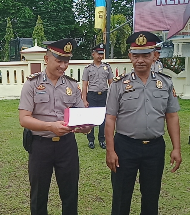 Memberi aba aba pelaksanaan kenaikan pangkat pada 23 personil polres Merangin yang mendapat kenaikan Pangkat setingkat keatas