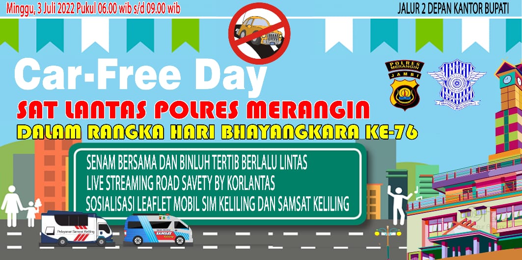 Merangin. Dinastinews.com. 2 Juli 2022. Polres Merangin dalam rangka Hut Bhayangkara ke-76. Kegiatan “Car Free Day dan Bimbingan dan Penyuluhan Tertib Berlalu Lintas dalam rangka Hari Bhayangkara ke 76 “. TERBUKA UNTUK UMUM.