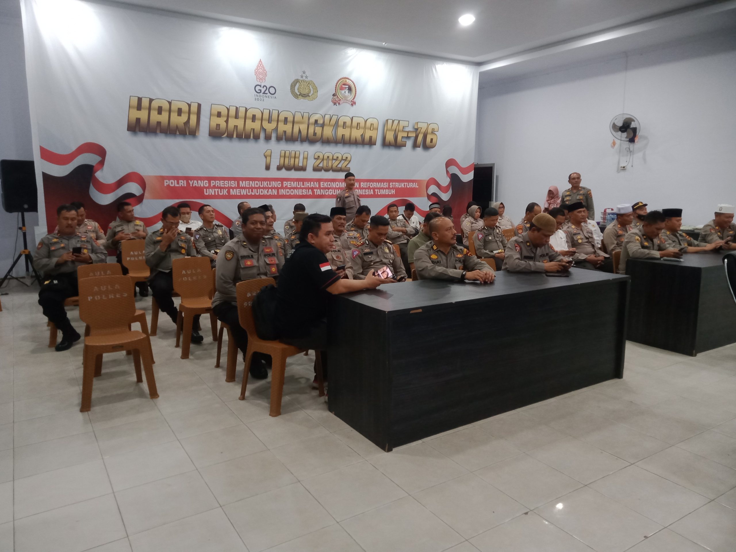 Kapolres juga sampaikan Apresiasi Atas disiplin yang ditampilkan personil polres pada kegiatan yang di ikuti saat Syukuran HUT Bhayangkara ke-76.
