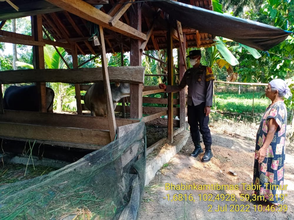 Dalam giat Bhabinlamtibmas dengan cara memberi himbauan untuk memantau sapinya dan jangan di liarkan mengingat sekarang di daerah lain sudah ada sapi yang terkena pengakit PMK.