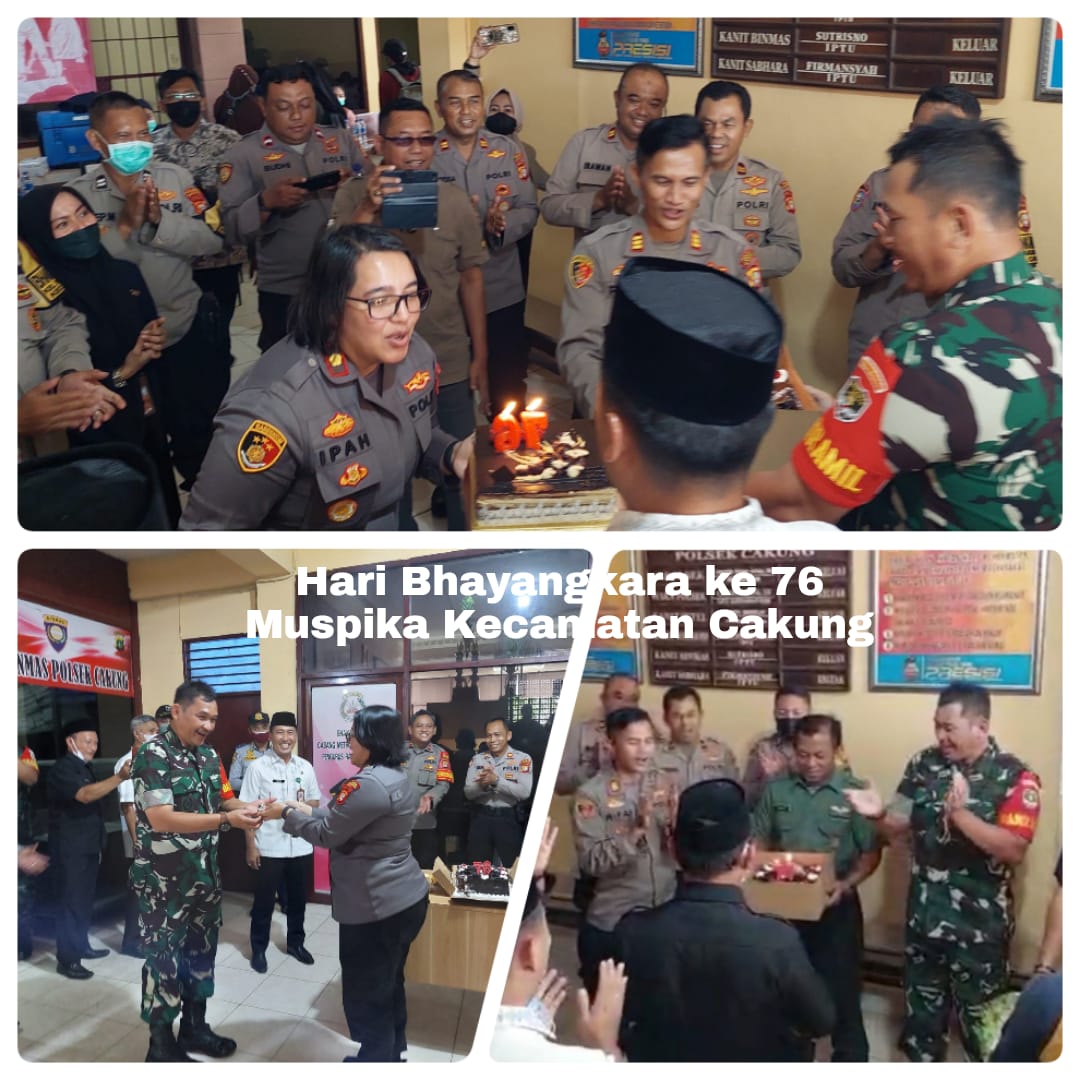 Di Hari Bhayangkara ke 76, dengan tema “Polri yang presisi mendukung pemulihan ekonomi dan Reformasi struktural guna mewujudkan Indonesia tangguh, Indonesia tumbuh” Kapten Inf Supriyatno Danramil Cakung beserta Babinsa, Camat Cakung beserta Staf, Tokoh masyarakat, Tokoh Agama dan Ormas di Wilayah Kecamatan Cakung dengan membawa kue ulang tahun dan tumpeng gruduk Polsek untuk memberikan Ucapan Hari Bhayangkara ke-76 Tahun 2022.