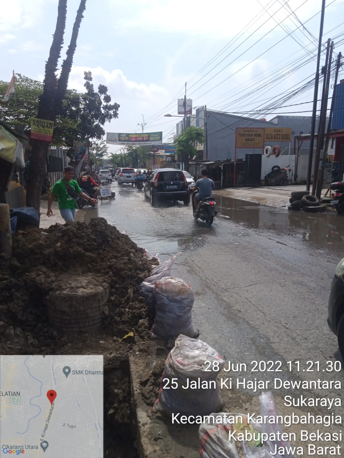 Akibat galian penanaman fiber optik di desa Sukaraya kecamatan Karangbahagia pada tgl 28/06/2022 pipa PDAM mengalami kebocoran & air sampai menggenangi jalan raya serta mengakibatkan kemacetan. Sampai Berita ini diturunkan Belum ada tanggapan dari pihak terkait.