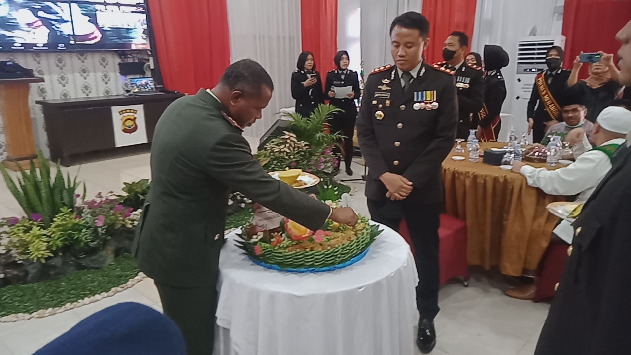 Kegiatan selanjutkanya dengan pemotongan tumpeng dan kemudian di serahkan kepada Personil Polri Tertua AKP. Rusman dan termuda Bripda. Ramadhani.