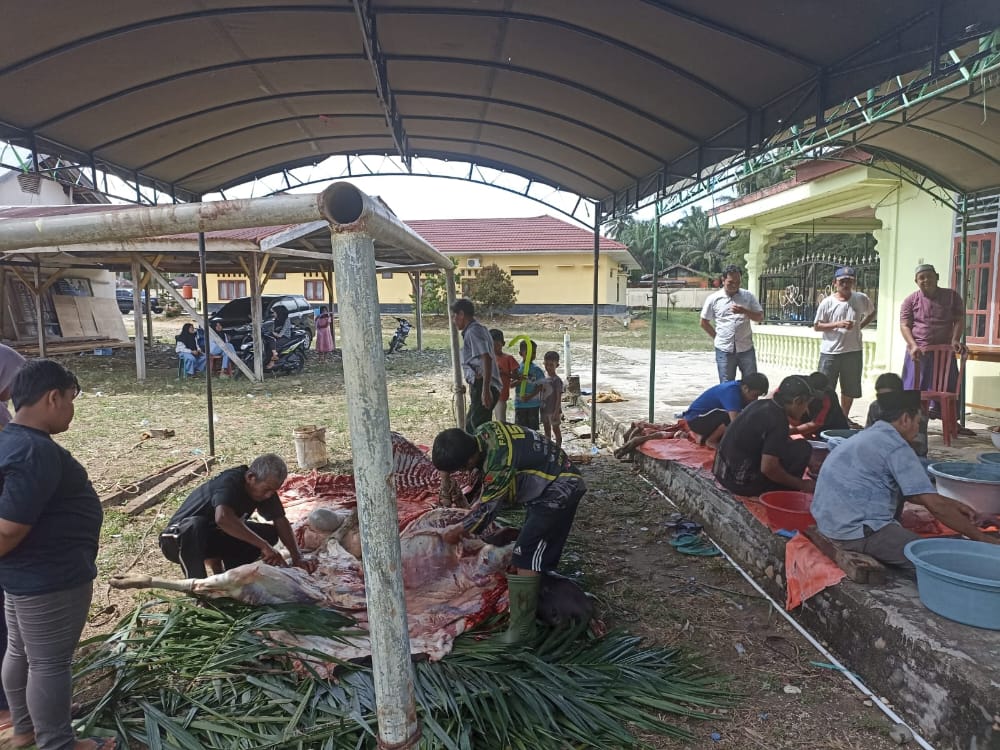 Melaksanakan Kegiatan Qurban Bersama warga seputaran polsek Tabir Melaksanakan Pemotongan Hewan Qurban ( 2 ekor sapi ) di halaman belakang polsek tabir.
