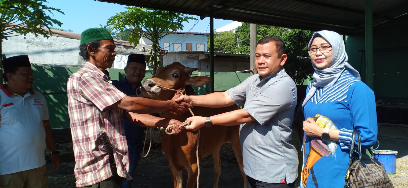 Dandim 0505/JT Kolonel Arm Yogo Widiatmoko, S.Sos.,M.Tr (Han) pimpin langsung kegiatan pemotongan hewan kurban, diawali dengan penyerahan hewan kepada H. Hasan selaku ketua panitia pemotongan Hewan kurban dari RPH Cakung.