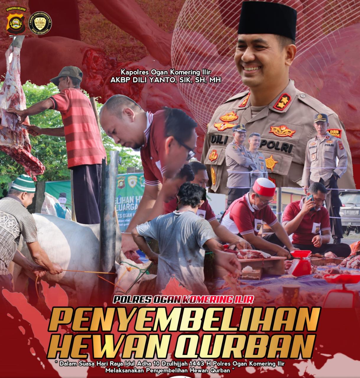 AKBP DILI YANTO menjelaskan bahwa 13 hewan kurban tersebut berasal dari Kapolres,para kabag, kasat, kapolsek, dan personil Polres OKI. Daging kurban disalurkan ke Santri pondok pesantren, selain itu daging kurban juga diberikan ke warga sekitar serta personil polres Ogan Komering Ilir (OKI).