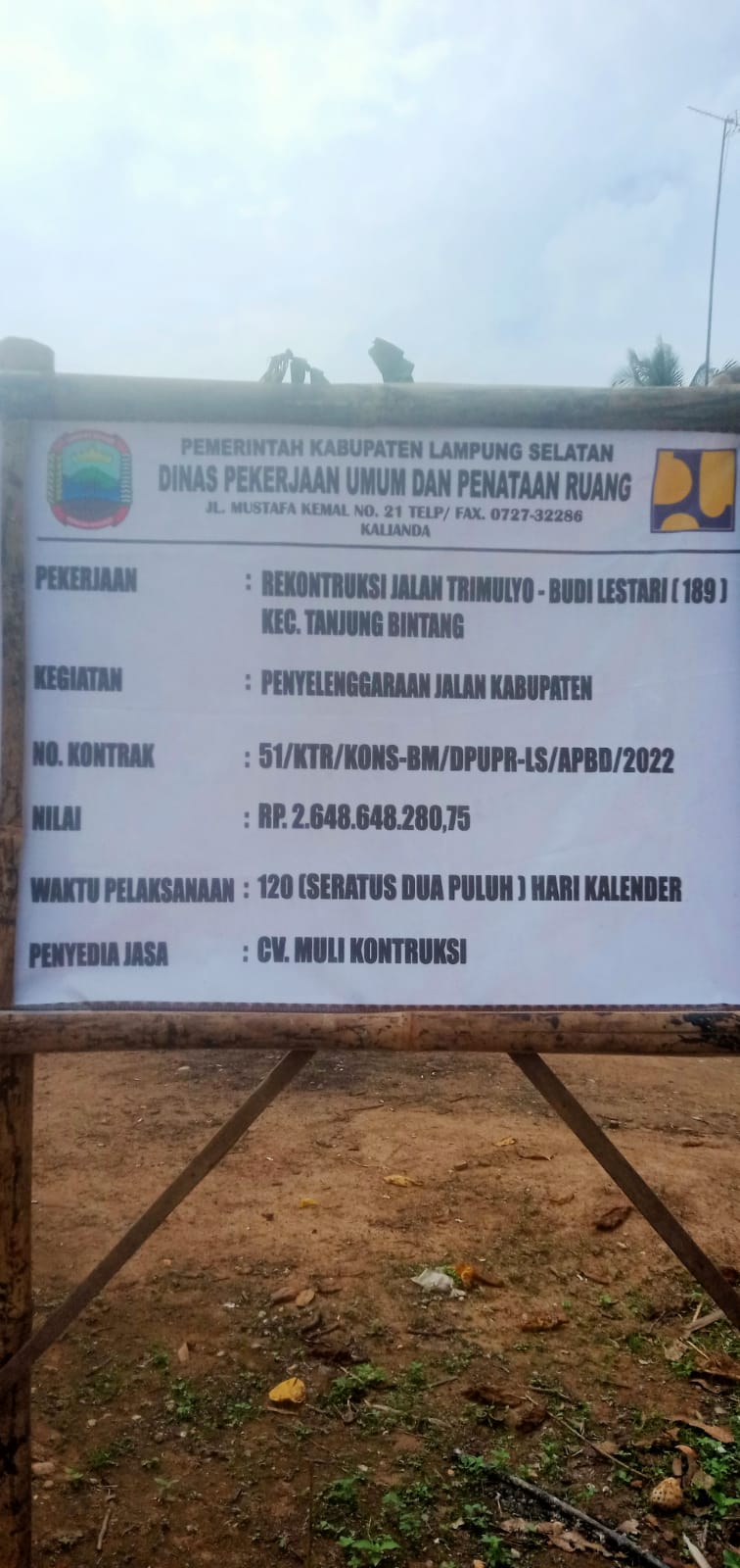 Sangat di sayang kan tindak an rekanan dan UPT PU Tanjung bintang Lampung selatan, terkait dugaan kurang nya ruang keterbukaan publik terkait pembangunan ruas jalan Trimulyo sampai dengan Budi lestari kecamatan Tanjung bintang.