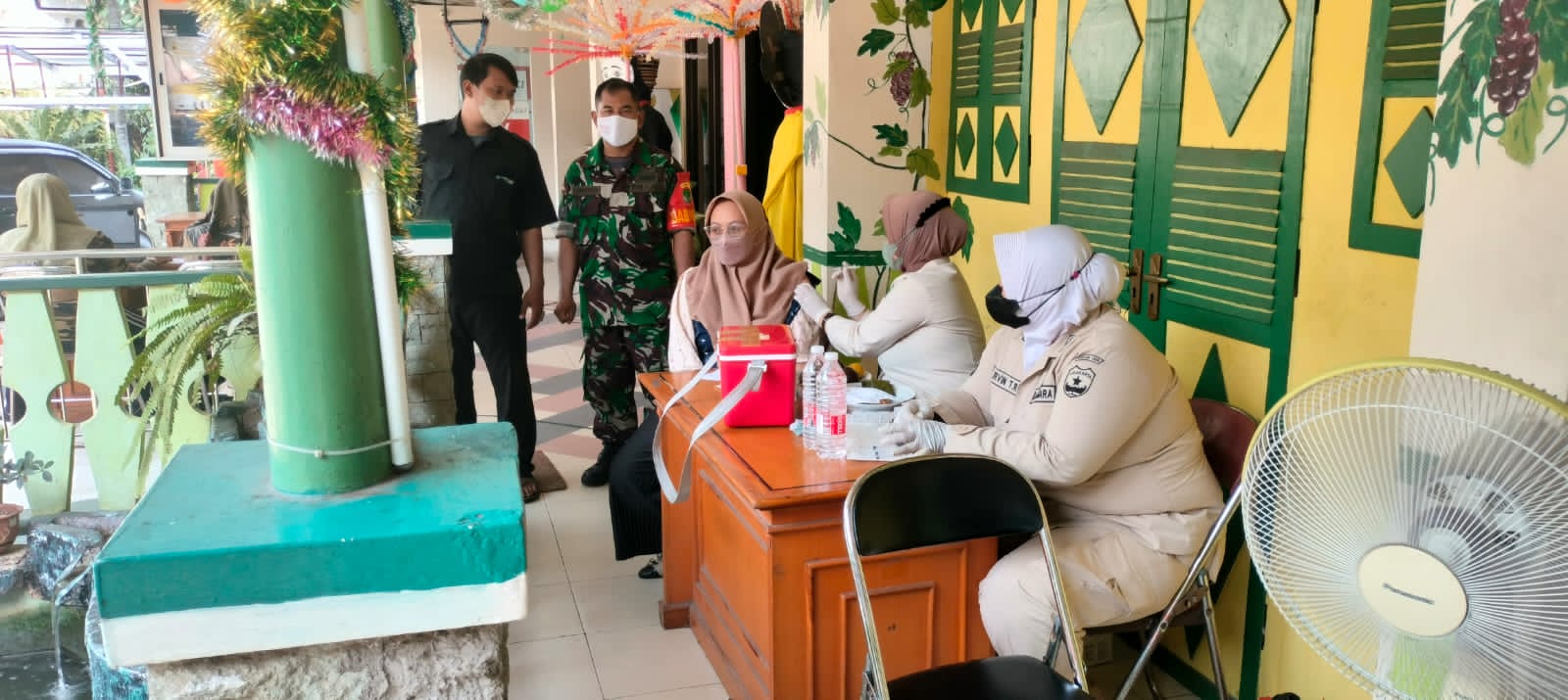 Danramil 06/Cakung Kapten Inf Supriyatno pada Giat Vaksinasi lanjutan Booster menyampaikan, target 100 orang di Wilayah Cakung timur yang sudah mencapai hasil maksimal, Kodim 0505/Jakarta timur melalui Koramil 06/Cakung kali ini menggelar Vaksinasi lanjutan dengan peruntukan warga Kelurahan Cakung timur yang akan vaksin lanjutan dosis-2 dan Booster.