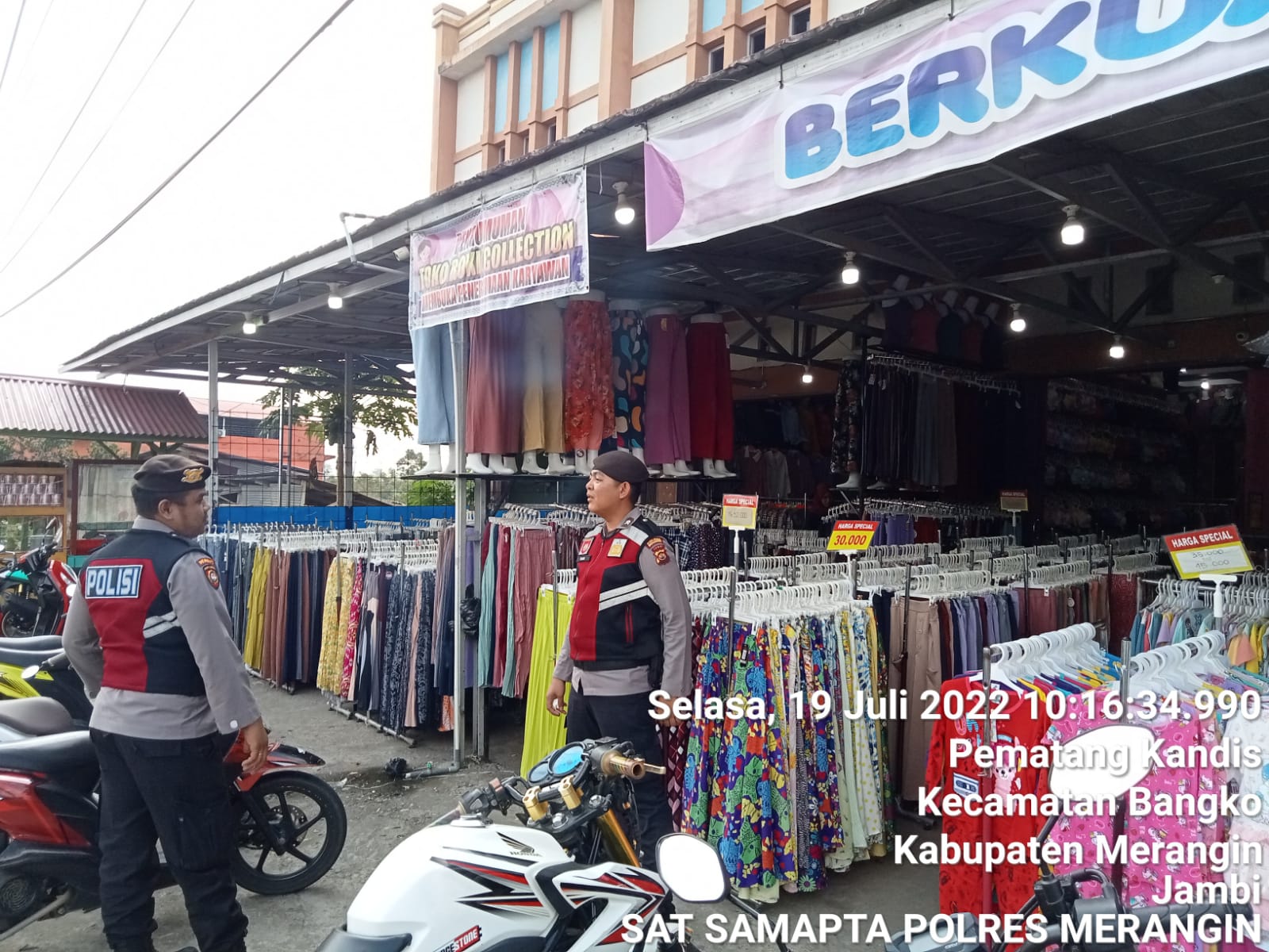 Selasa,19 Juli 2022 berlokasi di Pusat Pertokoan dan Pasar Rakyat, Personil Patroli BEAT mengikuti dan memonitoring memberi kenyamanan warga melaksanakan berbelanja. dalam menciptakan situasi Kamtibmas yang aman, nyaman dan kondusif diKabupaten Merangin bersama instansi terkait melakukan pengamanan dan Kamtibmas.