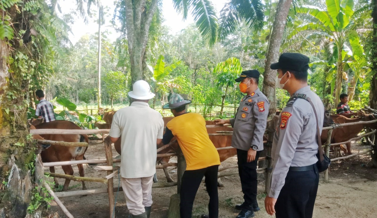 Kapolsek menjelaskan, pelaksanaan vaksinasi PMK pada hewan ternak terutama sapi dilakukan secara door to door dan disaksikan langsung oleh para pemilik hewan ternak.