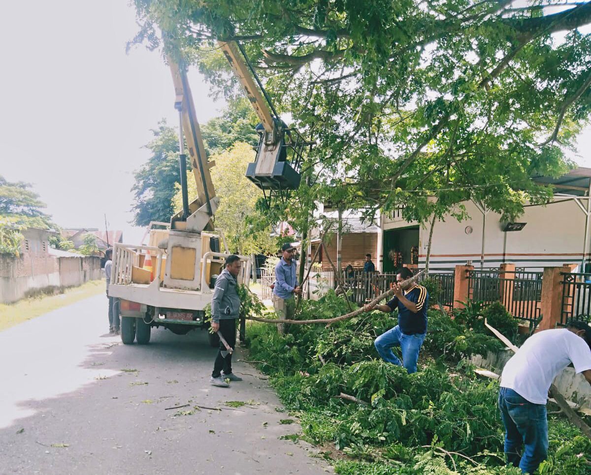 Hasbi juga menggerakkan sejumlah personilnya untuk merapikan semak – semak cabang – cabang pohon dipinggir jalan depan Kantornya. Yang bertujuan menjaga keselamatan warga kenyamanan pengguna jalan agar tidak tertimpa cabang dan ranting pohon yang rindang rapuh maupun cabang yang sudah lapuk.