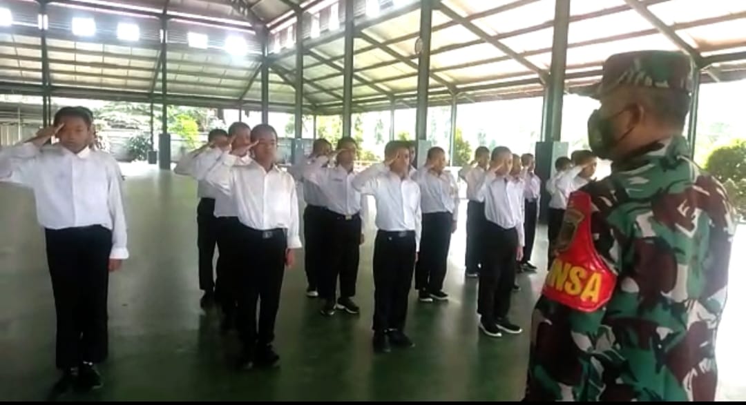 Dinastinews.com Jakarta — Kodim 0505/Jakarta timur – Dalam rangka membentuk disiplin para siswa Sekolah Pendidikan Diniyah Formal Minhajurosidin Internasional Islamic Boarding School (PDF MIIBS Wusto (SMP) Minhajurosidin jln SPG 7 RT.5/09 Kelurahan Lubang buaya Kecamatan Cipayung, Selasa (26/07/22).