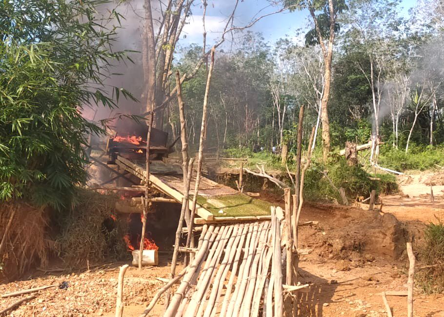 Diduga para pekerja PETI sudah dahulu kabur sebelum Tim tiba dilokasi kegiatan PETI, Lantas semua peralatan PETI di rusak dan bakar,” kata Yurizal.