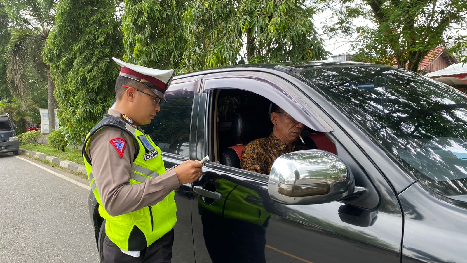 Satlantas Polres Merangin Backup Pemeriksaan Pajak Kendaraan Bermotor.
