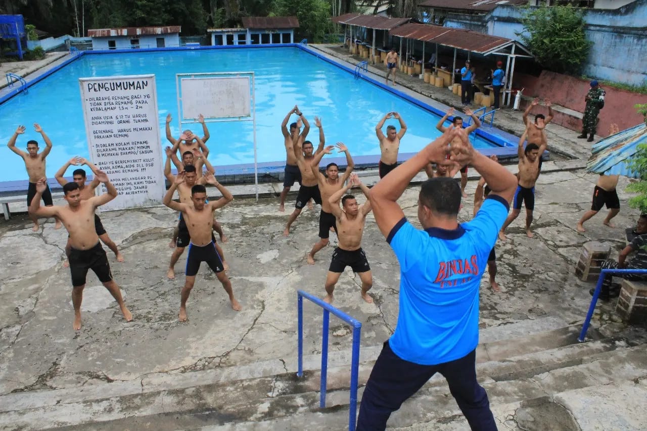 Dinastinews.com Dumai — Sebagai salah satu bagian dari pembinaan prajurit, Lanal Dumai melaksanakan uji ketangkasan berenang jarak 50 meter kepada setiap prajurit Lanal Dumai. Kegiatan yang dipimpin oleh Pgs. Pajasrek Lanal Dumai Kapten Laut (KH) Arief Rahman Hakim dan Tim Jas Lanal Dumai dilaksanakan di Kolam Renang Simanalangi, Kelurahan Bukit Nenas, Kecamatan Bukit Kapur, Kota Dumai, Jumat (29/07/2022).