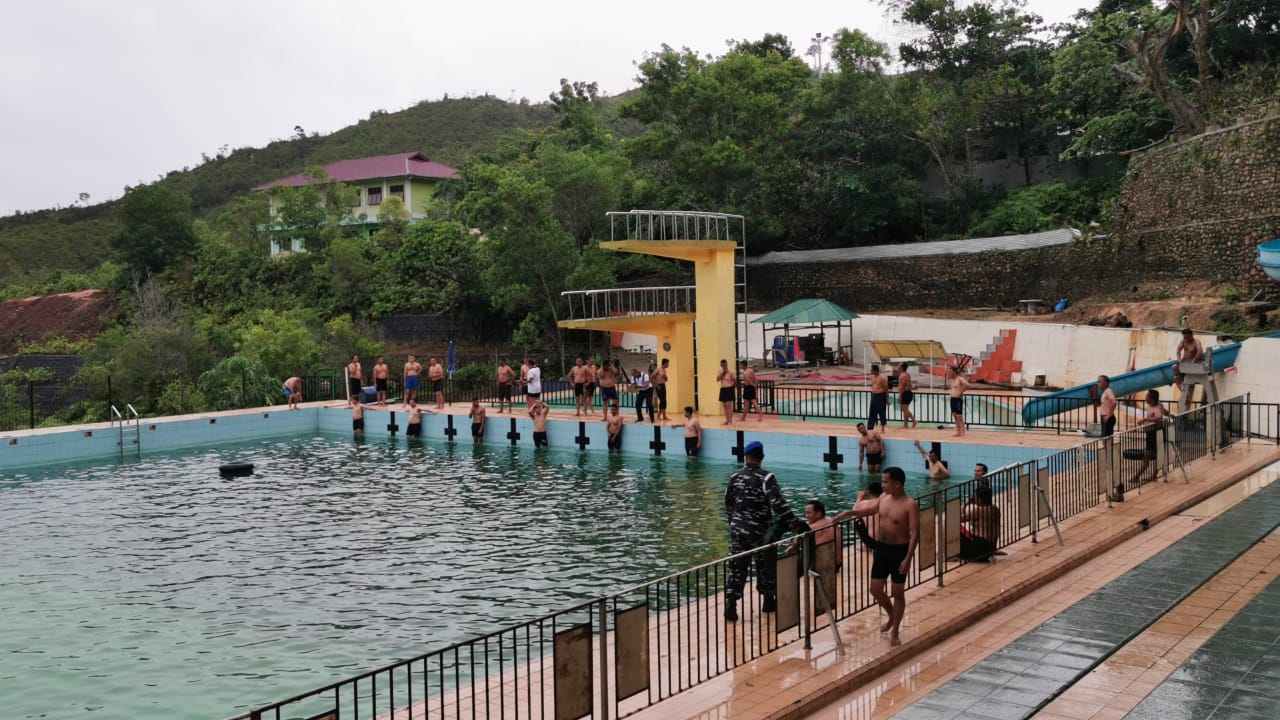 Dinastinews.com Sibolga — Dalam rangka menguji ketangkasan dan meningkatkan kemampuan prajurit Benteng Samudera Perkasa, Lanal Sibolga melaksanakan ketangkasan renang di Kolam Renang Gor Parombunan Kota Sibolga Sumatera Utara, Jumat (29/07/2022).