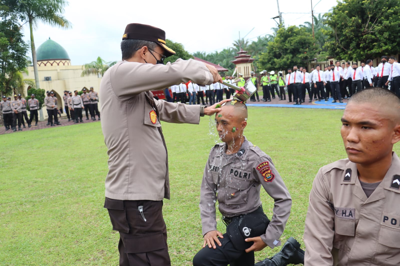 Pada rangkaian pelaksanaan upacara, Tradisi penyambutan dengan penyiraman air bunga dilakukan Kapolres Sarolangun serta Ketua Bhayangkari Cabang Sarolangun kepada perwakilan Bintara baru sebagai tanda penerimaan personel baru yang akan bertugas di Polres Sarolangun.