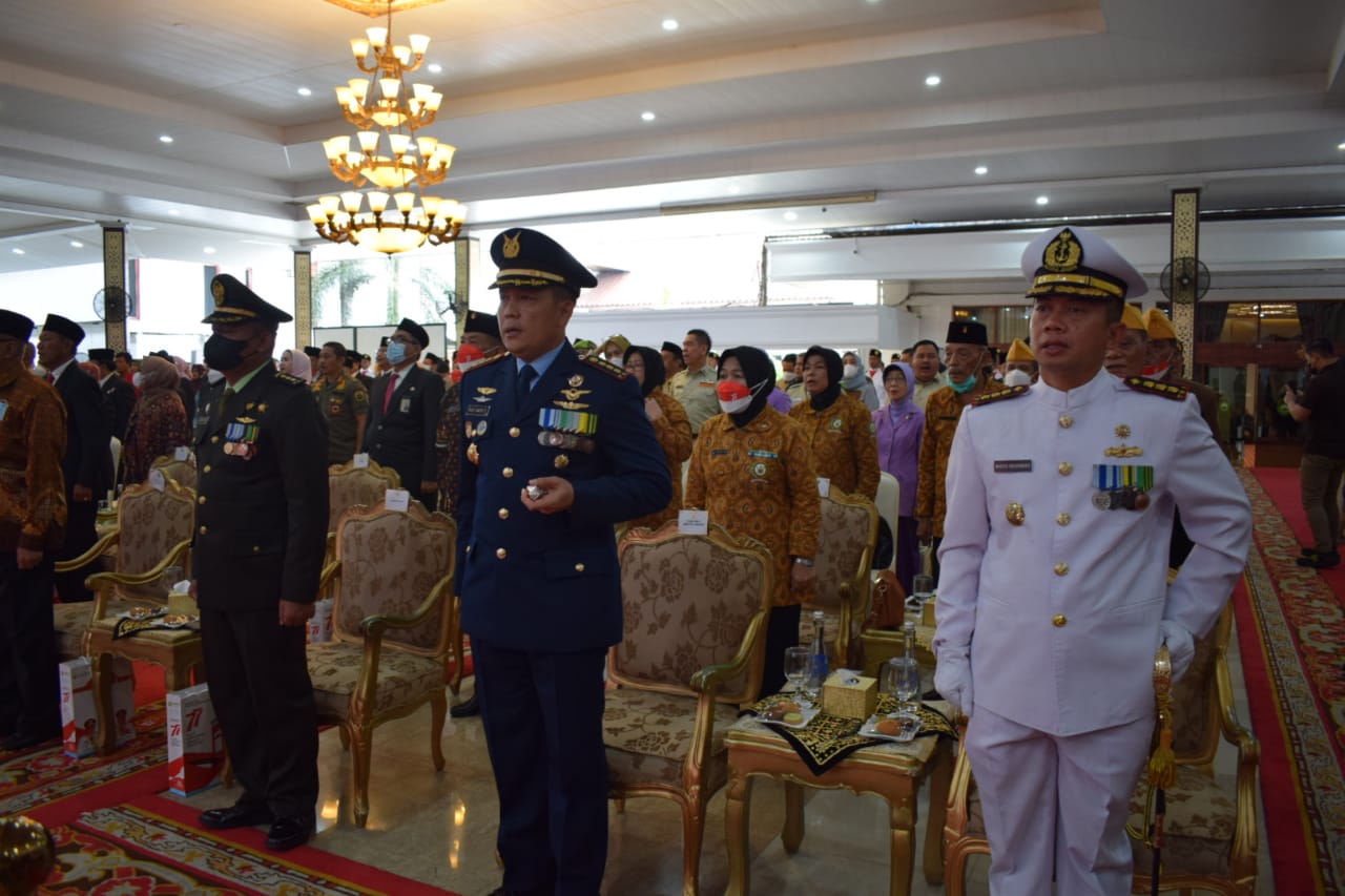 Acara tersebut dihadiri oleh Gubernur Sumsel H. Herman Deru, Pangdam II/Swj diwakilli Irdam Brigjen Heru Setio P, Kapolda Sumsel diwakilli Wakapolda Brigjen Pol Rudi Setiawan, Kabinda Sumsel diwakilli Mayor Inf Mulyawan, Ketua DPRD Provinsi Sumsel diwakilli Wakil Ketua Hj. Kartika Sandra, Danlanal Palembang Kolonel Laut (P) Widyo Sasongko, S.E, M.Tr. Hanla., Danlanud SMH Palembang Kolonel Pnb Sigit Gatot Prasetyo, Kajati Sumsel diwakilli Raja Ulung Padang dan Para LVRI dan PEPABRI Sumsel.