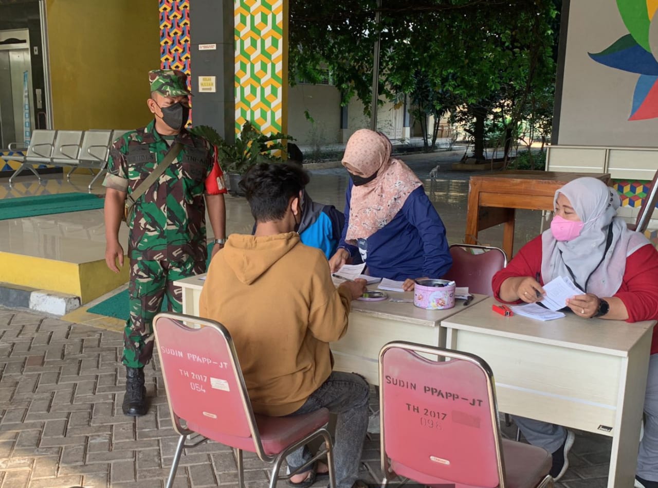 Dinastinews.com Jakarta — Kodim 0505/Jakarta timur – Koramil 08/Duren sawit bersama Tiga Pilar dan Makesdam Jaya Giat Vaksinasi Covid-19 bertempat di Gedung P2KPTK2 jln. Duren sawit baru RW.11 Kelurahan Duren sawit Kecamatan Duren sawit, Jumat (19/08/22).