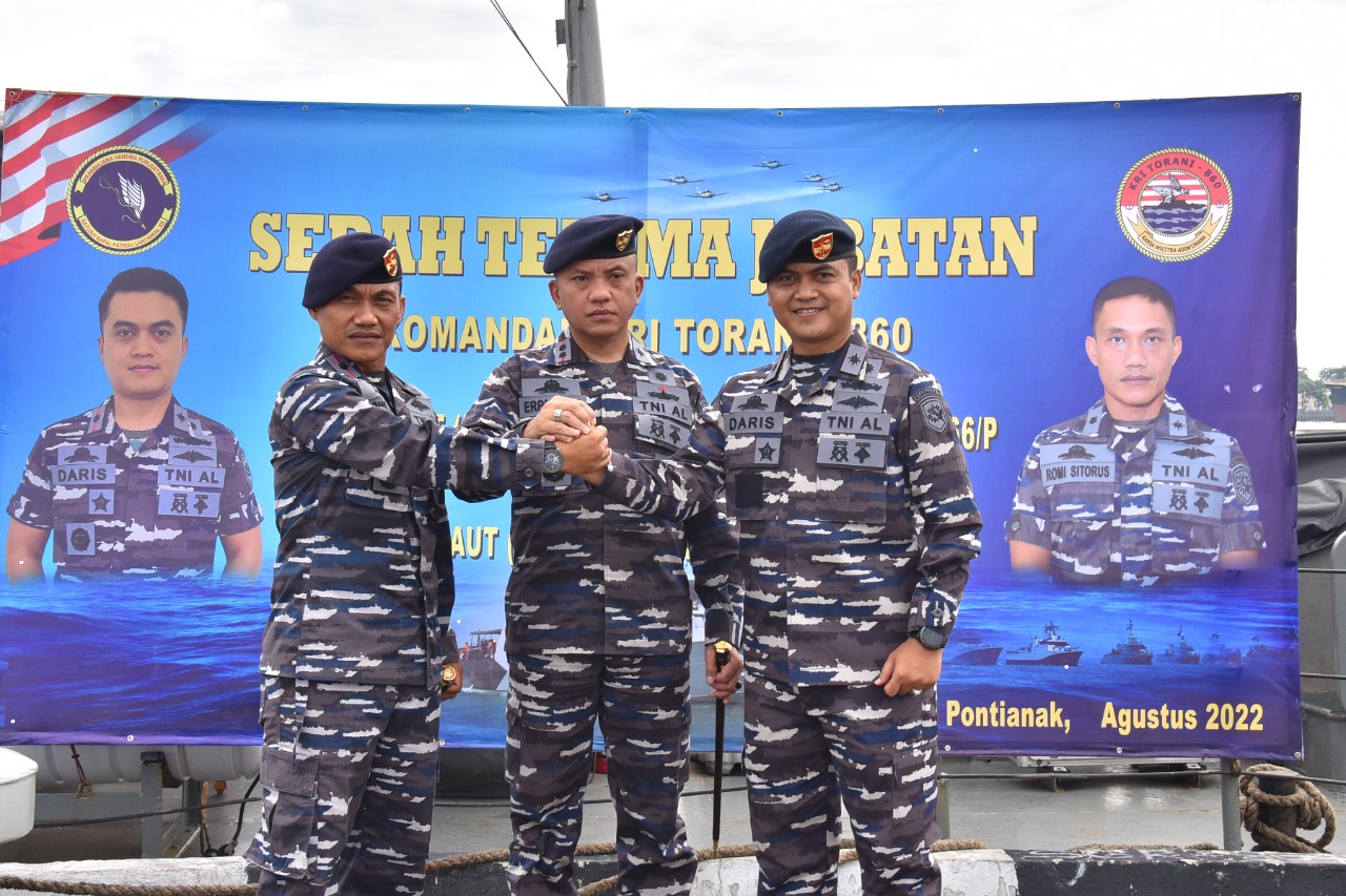 Upacara serah terima jabatan Komandan KRI Torani-860 berdasarkan Keputusan Kasal Nomor Kep/2692/VII/2022 tanggal 25 Juli 2022 tentang pemberhentian dari dan pengangkatan dalam jabatan di lingkungan TNI Angkatan Laut dan berdasarkan Surat Perintah Danlantamal XII Nomor Sprin/745/VII/2022 tanggal 19 Agustus 2022.