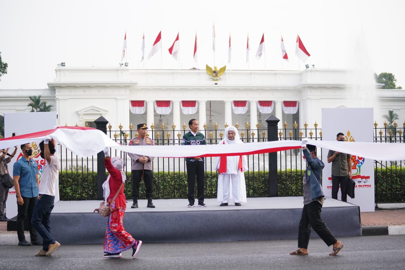 Kirab merah putih ini dilepas oleh Presiden Indonesia Joko Widodo (Jokowi) dari depan istana merdeka bersama Ulama karismatik Habib Luthfi bin Ali bin Yahya dan Kapolri Jenderal Listyo Sigit.