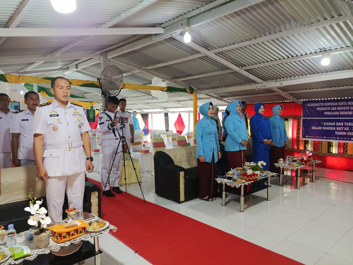 Dinastinews.com Simeulue —Pangkalan TNI AL Simeulue peringati acara puncak HUT Ke-76 Tahun 2022 dengan tema “Jalasenastri Berperan Serta Mewujudkan Keluarga Sehat, Produktif dan Inovatif Dalam Mendukung Pemulihan Ekonomi Nasional”, bertempat di Balai Prajurit Mako Lanal Simeulue, Jalan Letkol Ali Hasan, Desa Lugu, Kecamatan Simeulue Timur, Kabupaten Simeulue, Rabu (31/08/2022).