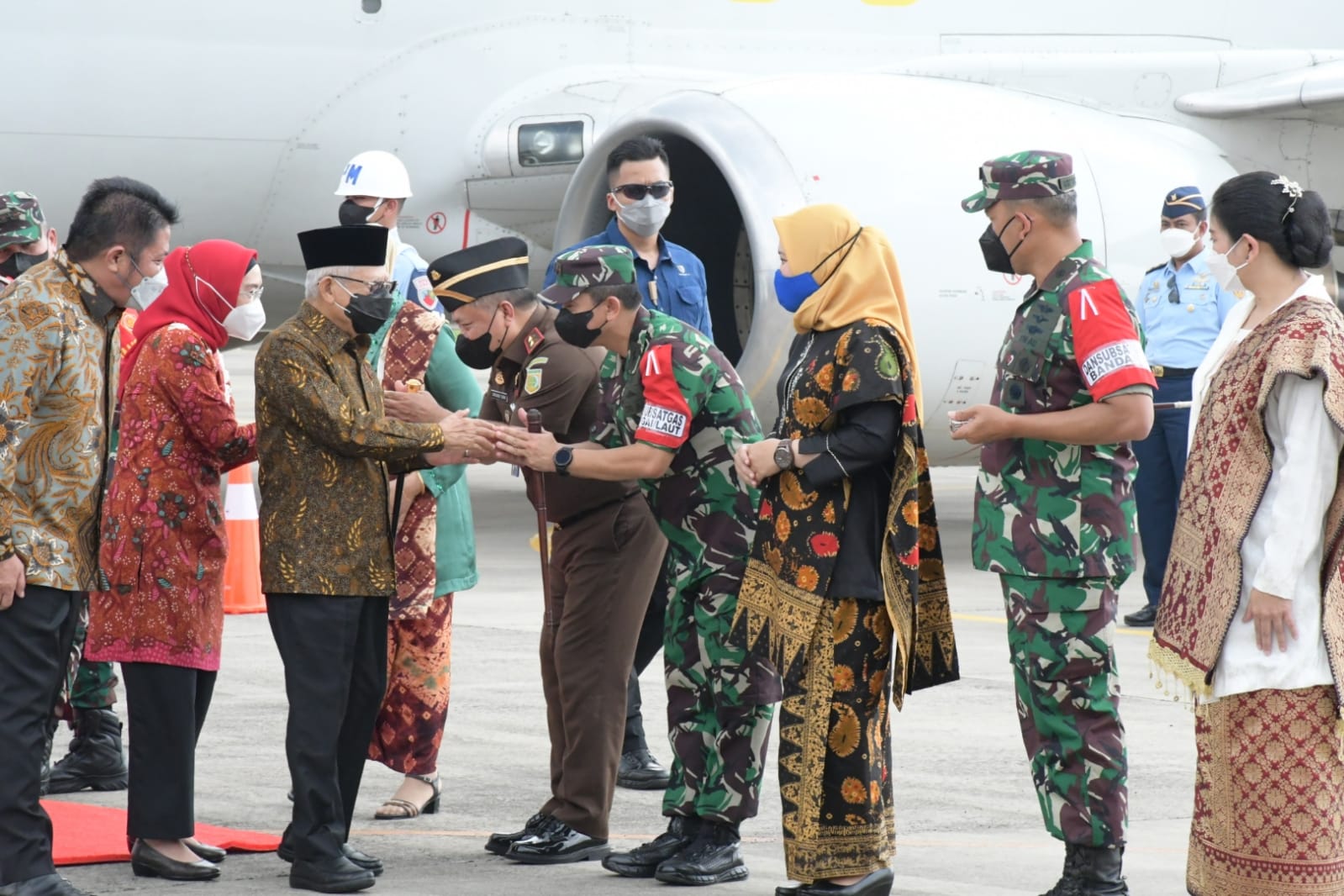 Kedatangan Wakil Presiden Republik Indonesia Prof. Dr. (H.C.) K.H. Ma’ruf Amin dan Ibu Hj. Wury Ma’ruf Amin dengan menggunakan Pesawat Milik TNI-AU Boeng 737-400 A.7306.