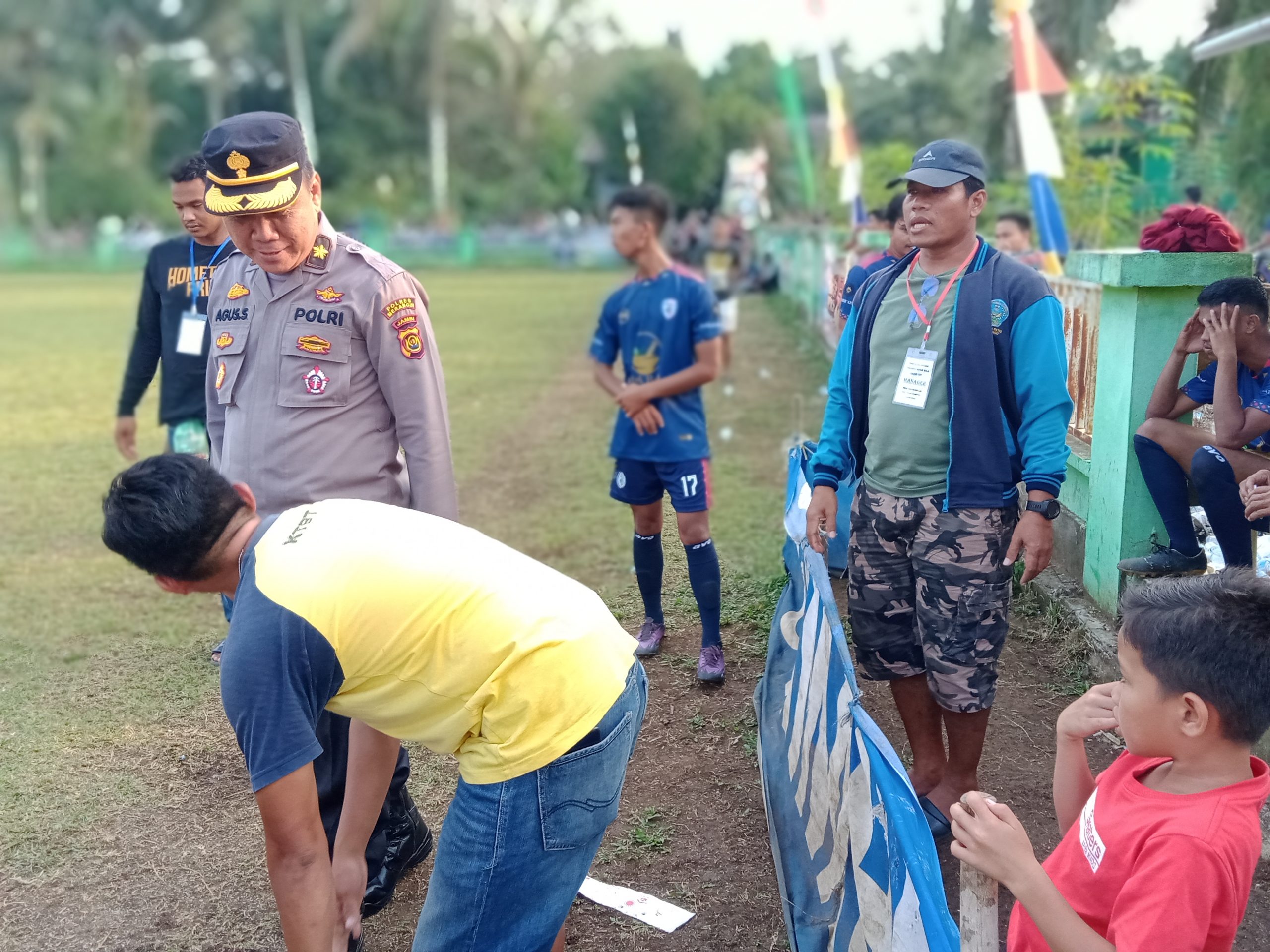 Akbp. Dewa Ngakan Nyoman Arinata. S.I.K.,MH Kapolres Merangin Melalui Kabag Ops Polres Merangin Kompol. Agus Saleh langsung memonitoring giat Pengamanan Turnamen Sepak Bola Al Haris Cup di Desa Sekancing Ilir di Wilayah Hukum Polsek Muara Siau dan menghindar terjadinya tindakan yang tak di ingin kan.