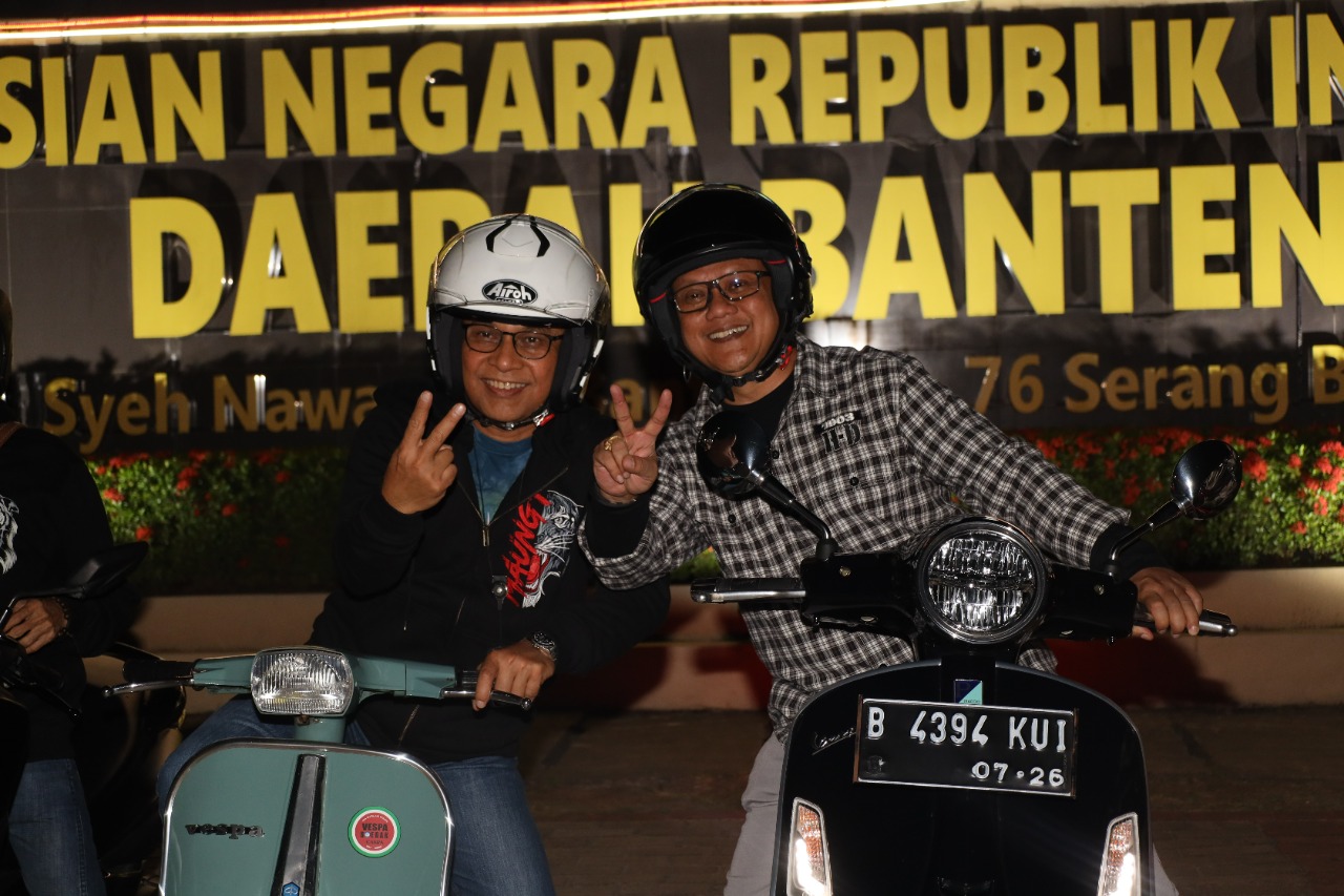 Serang – Polda Banten gelar kegiatan Fun Vespa Maung diikuti Kapolda Banten Irjen Pol Prof. Dr. Rudy Heriyanto, didampingi Wakapolda Banten Brigjen Pol Drs. Ery Nursatari beserta PJU Polda Banten pada Selasa (27/09).