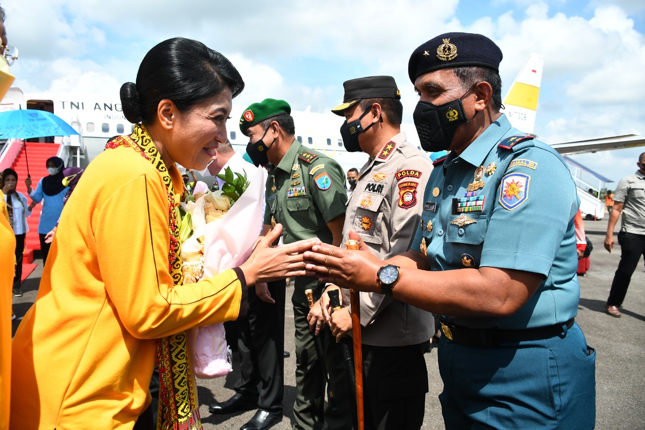 Dinastinews.com Mempawah,Lantamal XII — Komandan Lantamal XII Laksamana Pertama TNI Suharto, S.H., M.Si. (Han)., beserta Ketua Korcab XII DJA I Ny. Reni Suharto menyambut kedatangan Ketua Umum Dharma Pertiwi Ny. Hetty Andika Perkasa beserta rombongan di Lanud Supadio, Kabupaten Kubu Raya, dalam rangka kunjungan kerja di Provinsi Kalimantan Barat, Rabu (28/09/2022).