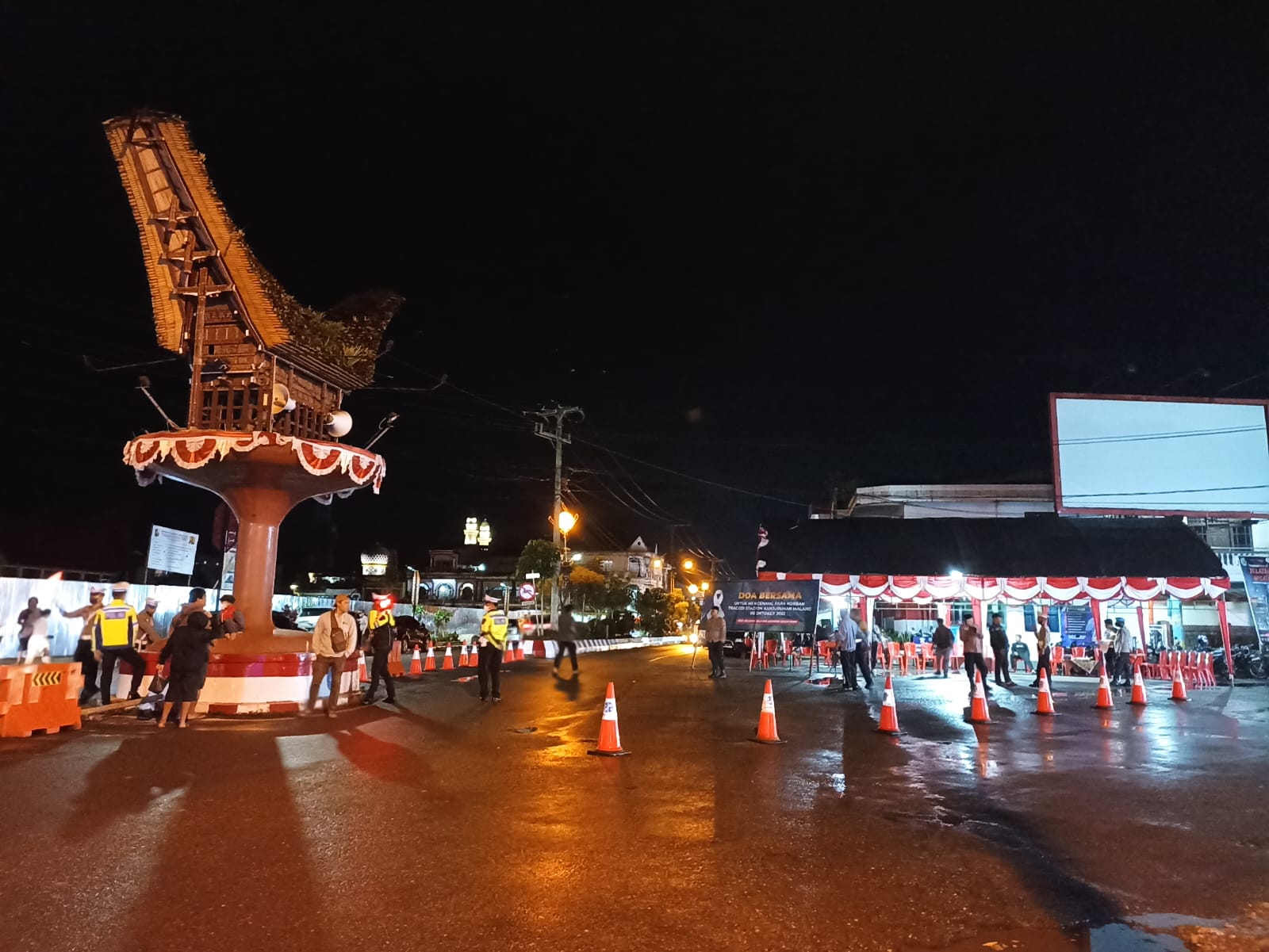 Dinastinews.com, Toraja Utara-Polres Toraja Utara, menggelar aksi penyalaan lilin dan doa bersama di Tugu Kandean Dulang Kota Rantepao, Toraja Utara, Sulawesi Selatan, Sabtu (08/10/22), Pukul 19.30 WITA sebagai bentuk belasungkawa terhadap tragedi Kanjuruhan, Malang pada (01/10/22).