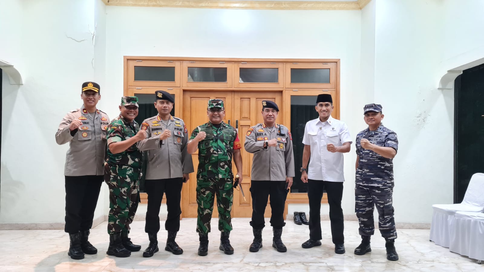 “Saya bersama Danrem 064/MY, Dirsamapta Polda Banten, Danlanal Banten, Dandim 0602 Serang dan Wakapolres Serang meninjau lokasi kunjungan Bapak Wakil Presiden,” ujar Edy Sumardi.