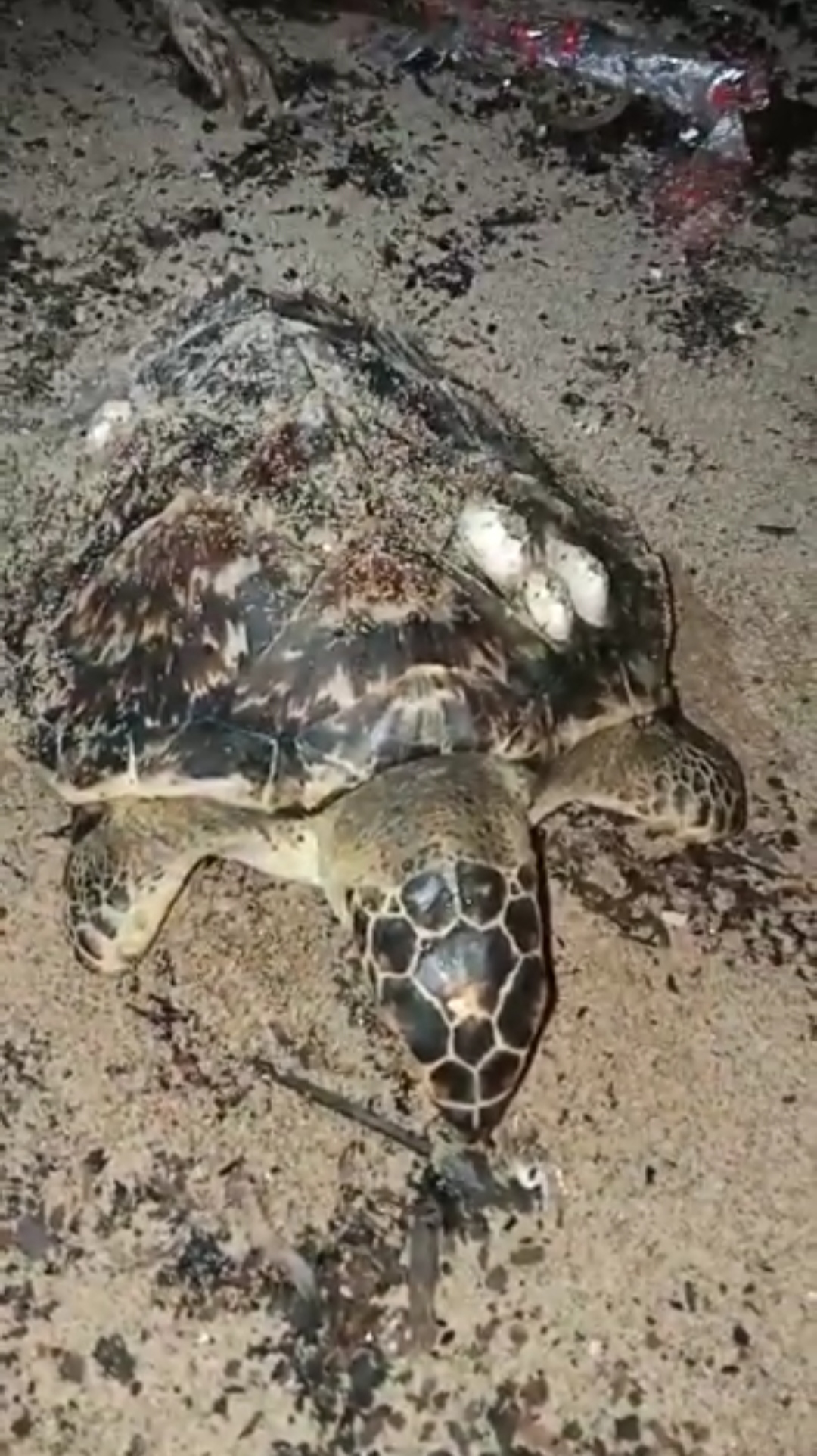 Penyu sisik itu memiliki panjang sekitar 30 sentimeter dan diperkirakan telah mati lebih dari 24 Jam.