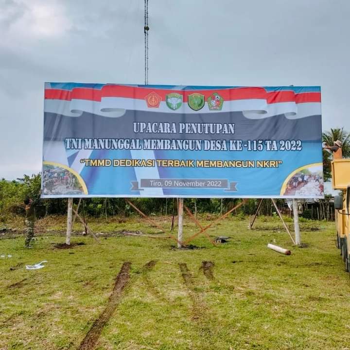 Danramil 15/Tiro Kapten Inf. Rusli legino, sebagai Perwira pengawas mengatakan “Di H-1 jelang penutupan TMMD dirinya memastikan semua personil akan bekerja semaksimal mungkin dalam menyiapkan sarana dan prasarana, mulai dari pembersihan seputaran lapangan upacara, tenda tamu, pemasangan umbul-umbul-baliho serta penyiapan Stand Bazar yang akan digelar untuk masyarakat sebagi salah satu bagian rangkaian kegiatan penutupan TMMD besok” Ujarnya