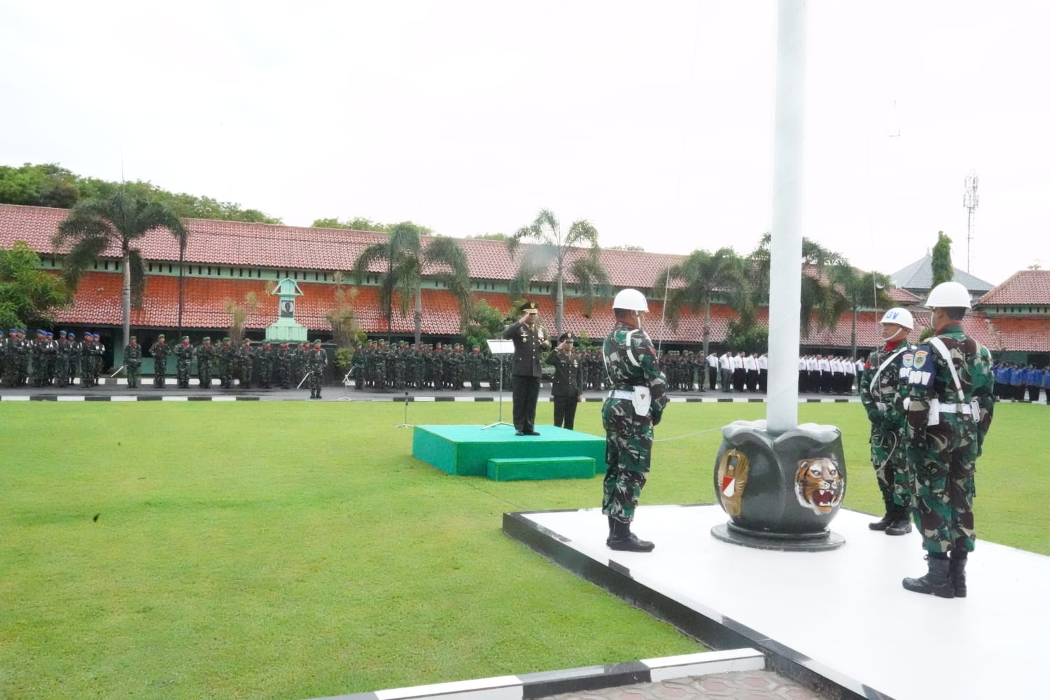 Danrem 064/MY Brigjen TNI Tatang Subarna memimpin Upacara Bendera dalam rangka memperingati Hari Pahlawan tahun 2022 di lapangan upacara Makorem 064/MY, Jalan Maulana Yusuf No 9 Kota Serang Rabu (10/11/22) pagi.