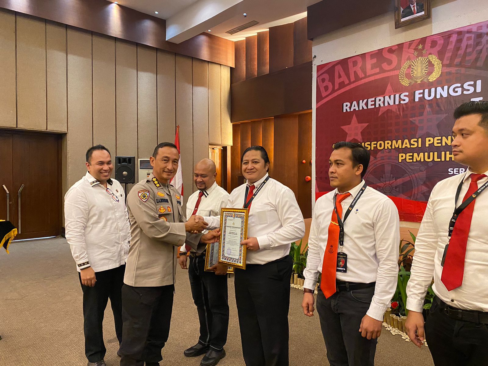 Kegiatan dilanjutkan dengan pemberian penghargaan oleh Ditreskrimum Polda Banten kepada Kompol M. Akbar Baskoro Ps. Kasubdit III Jatanras Ditreskrimum Polda Banten beserta 41 personel Subdit Jatanras dan Resmob atas dedikasi ungkap kasus curat dengan modus operandi gembos ban dan penanganan aksi geng motor, kedua Kompol Chandra Sasongko Kasubdit I Indag Ditreskrimsus Polda Banten beserta 13 personel tas dedikasi ungkap kasus tindak pidana Migas yang tidak standar dan perdagangan minyak curah pada saat kelangkaan minyak goreng tahun 2022, ketiga Kompol Didid Ismawan Kasubdit I Ditresnarkoba Polda Banten beserta 1 personel atas dedikasi berhasil ungkap kasus peredaran gelap Narkotika dan penemuan ladang ganja 3 hektar di Aceh Utara, keempat AKP Dedi Mirza Kasatreskrim Polres Serang Polda Banten beserta 8 personel atas dedikasi ungkap kasus tawuran, pengeroyokan dan gangster, kelima AKP Michael Kharisma Kasat Narkoba Polres Serang Polda Banten beserta 20 personel atas dedikasi ungkap kasus peredaran gelap narkotika dan penemuan ladang ganja seluas 3 hektar, keenam Ipda Doni S Kasubdit 2 Unit 2 Satresnarkoba Polresta Tangerang Polda Banten beserta 8 personel atas dedikasi Ungkap kasus tindak pidana narkoba jaringan Internasional di wilayah Cikupa Tangerang dengan Barang bukti Sabu 43 Kg dan pil Exatacy sebanyak 494 Kg (Bidhumas).